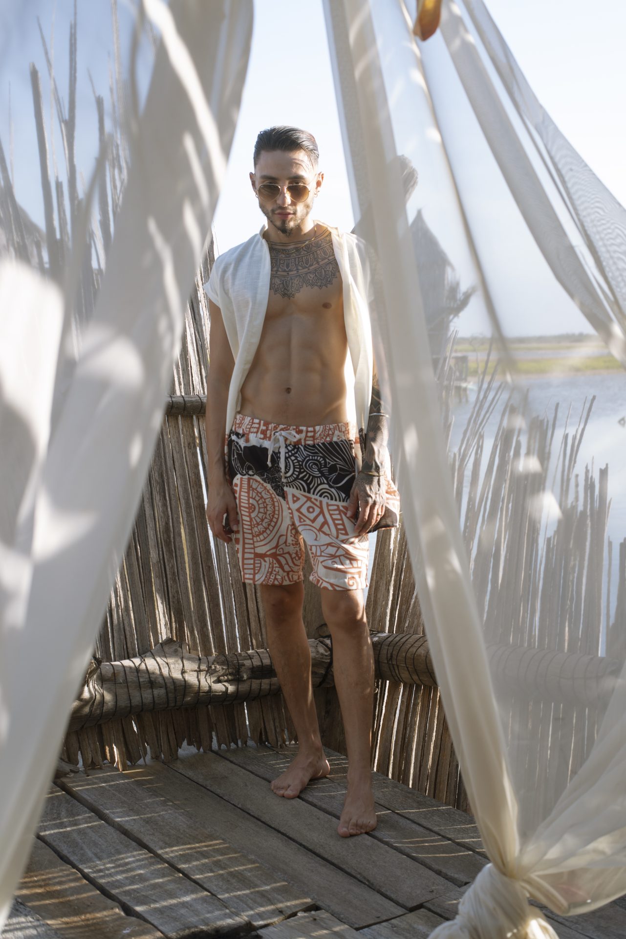 Tela estampada con carácter, fresca y cómoda para cualquier ocasión.