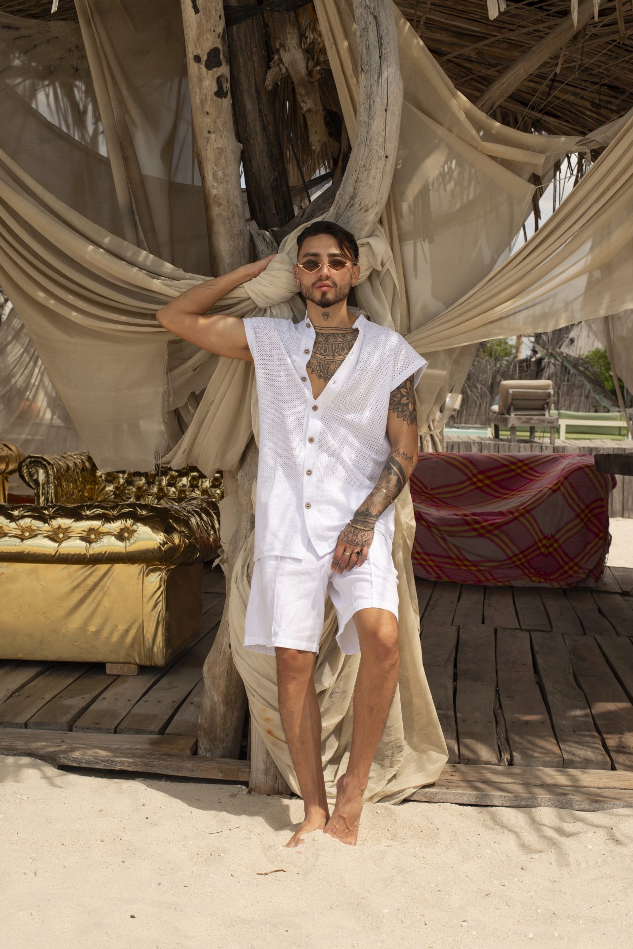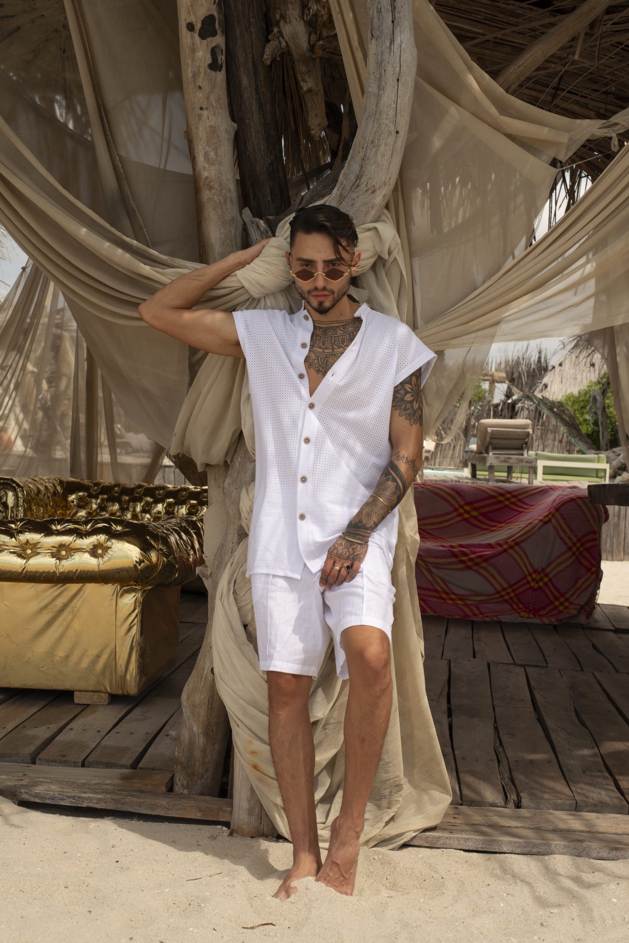 Set en lino natural fresco, pensado para comodidad y estilo masculino.